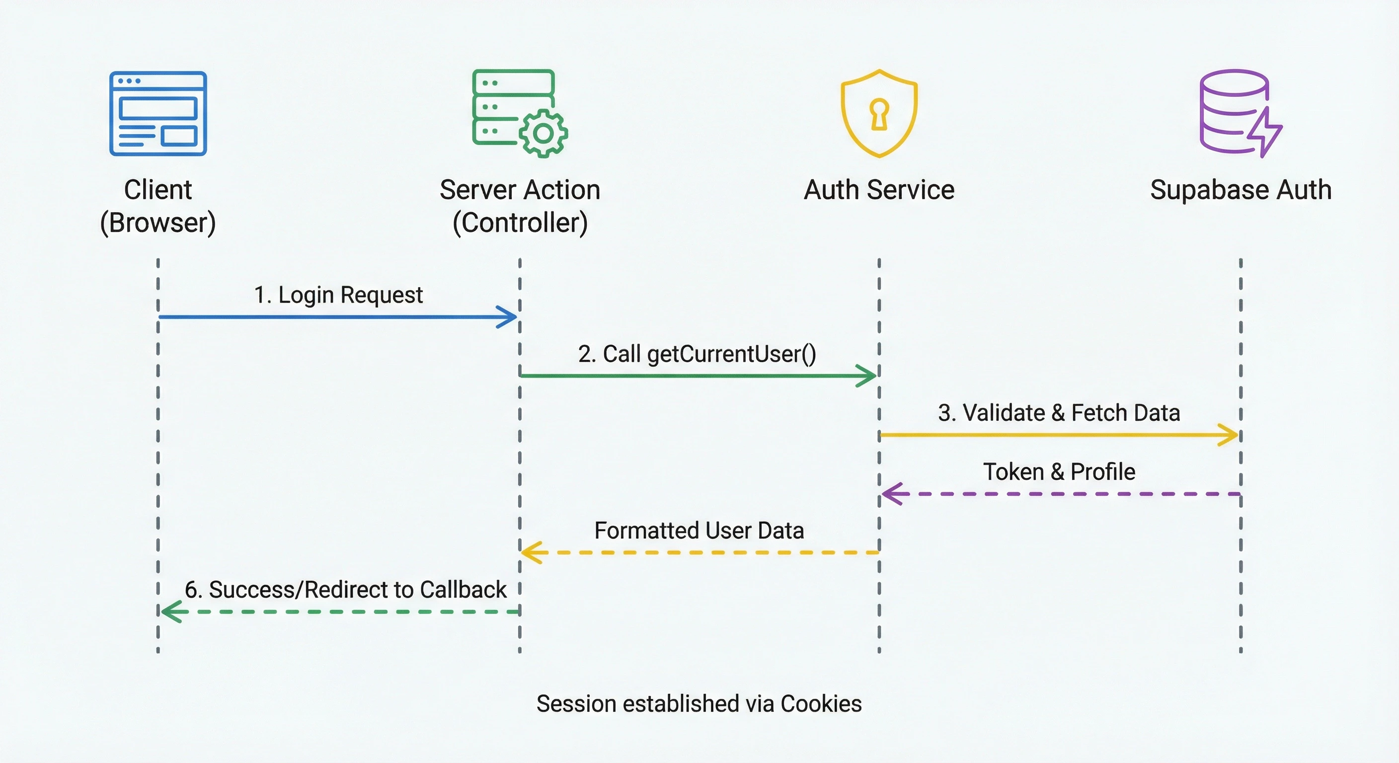 또한, GitHub 등 외부 인증 성공 후 사용자를 복귀시키는 redirectTo 경로는 반드시 /auth/callback 라우트를 거치도록 설정해야 서버 사이드 세션이 쿠키에 정상 기록됩니다.