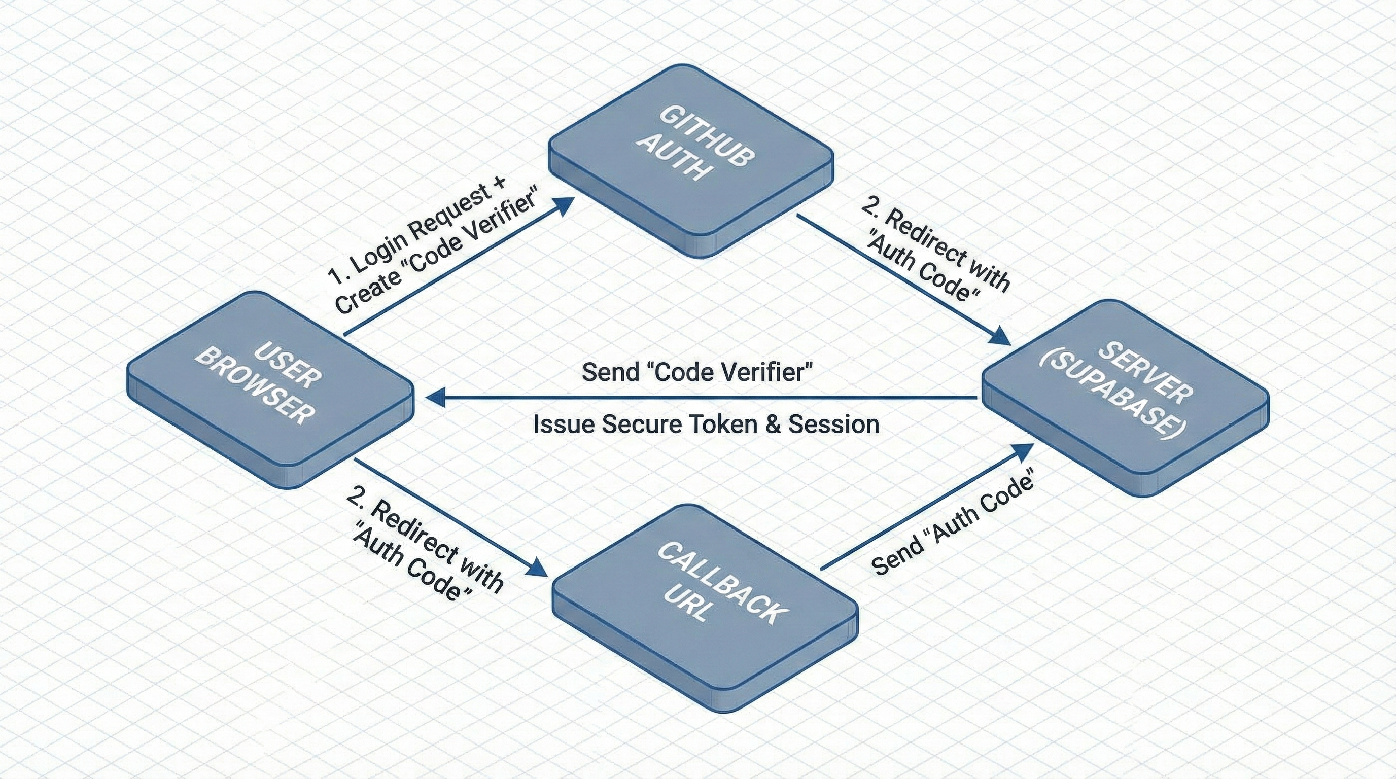 어플리케이션 개발 초기, GitHub 로그인이 자꾸 프로덕션 도메인으로 튕기는 현상은 단순 설정 오류가 아닌 OAuth 2.0의 보안 원칙과 맞닿아 있었습니다. Supabase와 같은 최근의 Auth 라이브러리는 PKCE (Proof Key for Code Exchange) Flow를 표준으로 강제합니다.