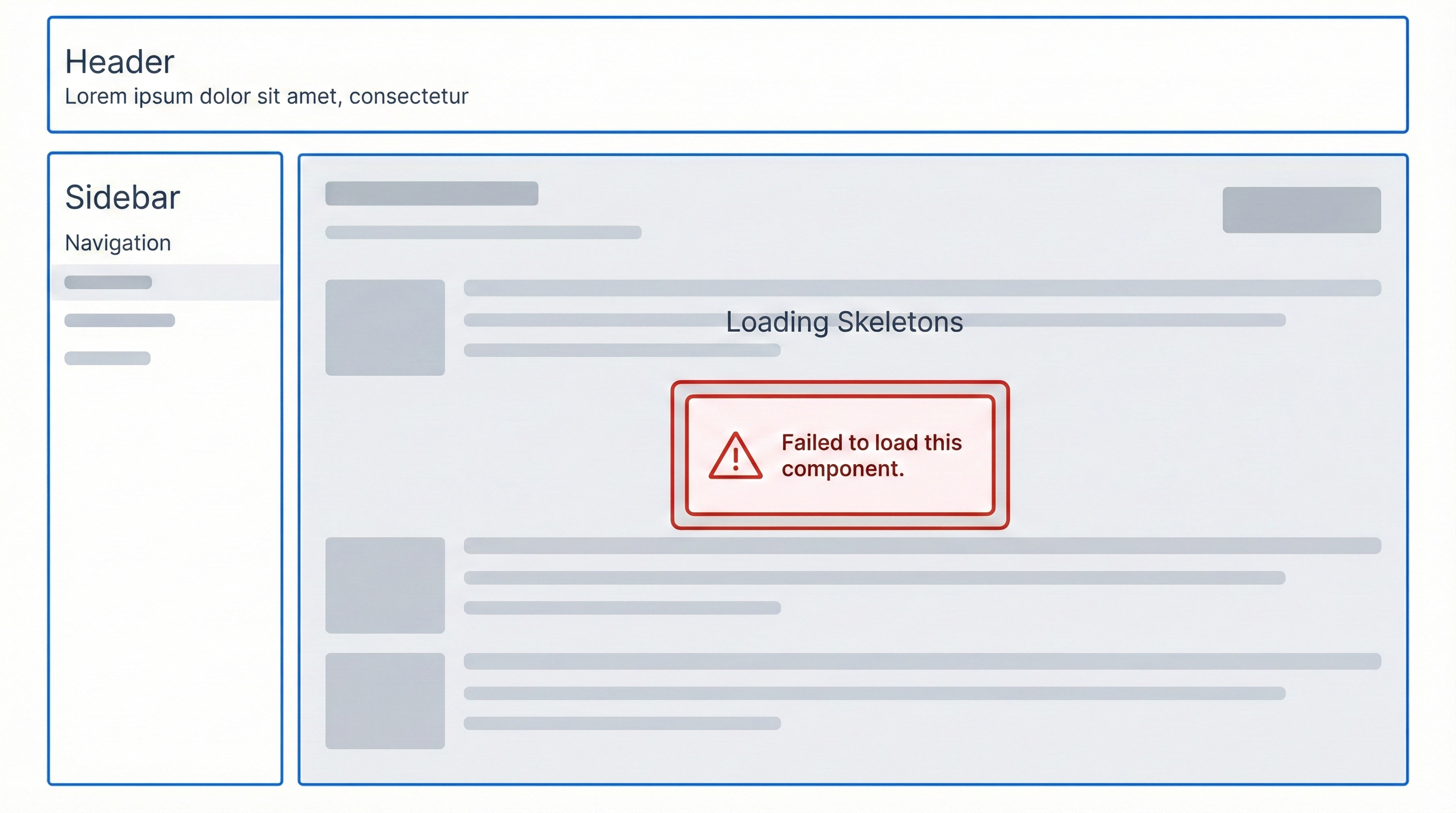 서버 컴포넌트에서의 에러는 페이지 전체를 멈추게 할 수 있습니다. Next.js의 파일 시스템 라우팅(loading.tsx, error.tsx)을 활용하여 이를 방어합니다.